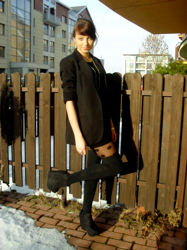 OMG! Love your tights, love your shoes, love your socks, love your blazer, love your dress, love your jewelry, love the whole outfit! It looks amazing! I’m following you, hope you follow back! xoxo